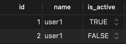 ON CONFLICT ("id") ...쿼리는 사실상 의미가 없다. 위 쿼리를 실행하게 되면 새로운 id에 name은 user1, is_active는 false인 새로운 레코드가 하나 추가된다.