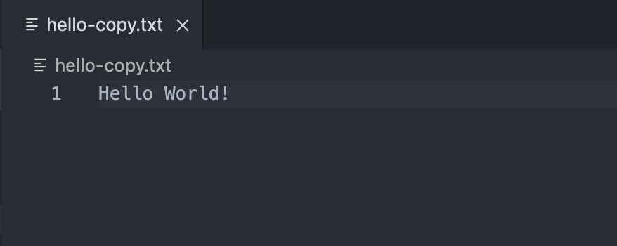 Readable stream으로 다음과 같은 hello.txt 파일의 데이터를 읽어서 Writable stream을 이용해 hello-copy.txt 파일을 만드는 예제를 통해 Readable stream을 이용하는 방법을 알아보려고 한다.